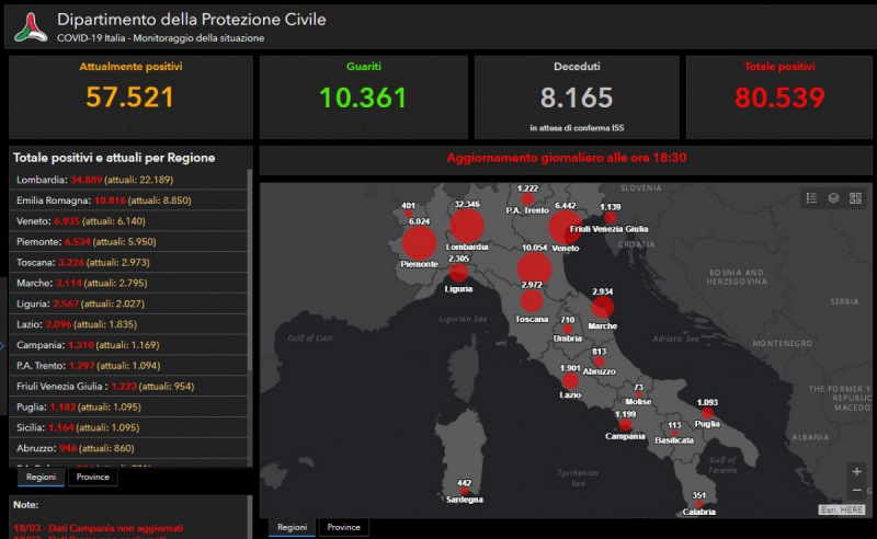 Questi i dati emanati dalla Protezione Civile riguardo al contagio da Coronavirus su tutto il territorio nazionale.
