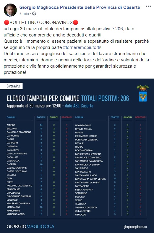 Questo quanto pubblicato sulla pagina facebook del Pres. della Provincia Giorgio Magliocca