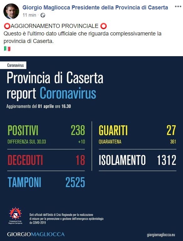 Questo quanto apprendiamo dalla pagina facebook del Pres. Magliocca: