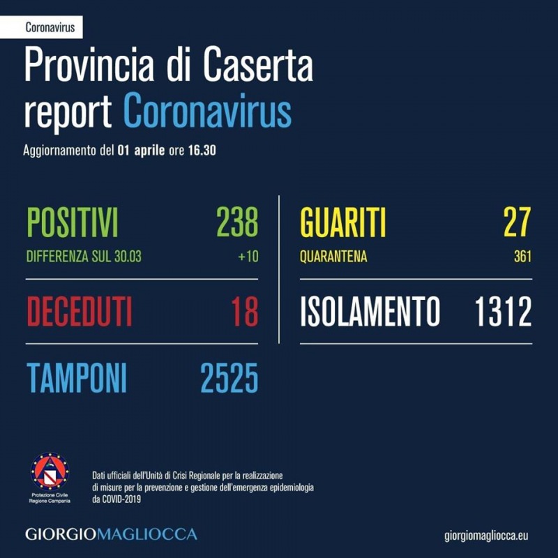 Coronavirus. La situazione dei contagi nella Prov. di Ce