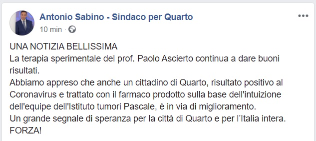 Questo quanto comunicato dal Sindaco di Quarto