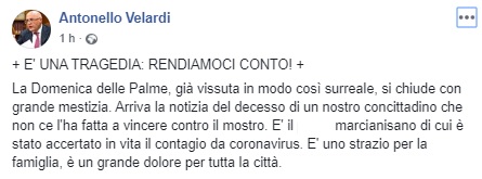 Questo quanto pubblicato dall'ex Sindaco Velardi