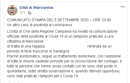 Lo apprendiamo dalla pagina Facebook Città di Marcianise.