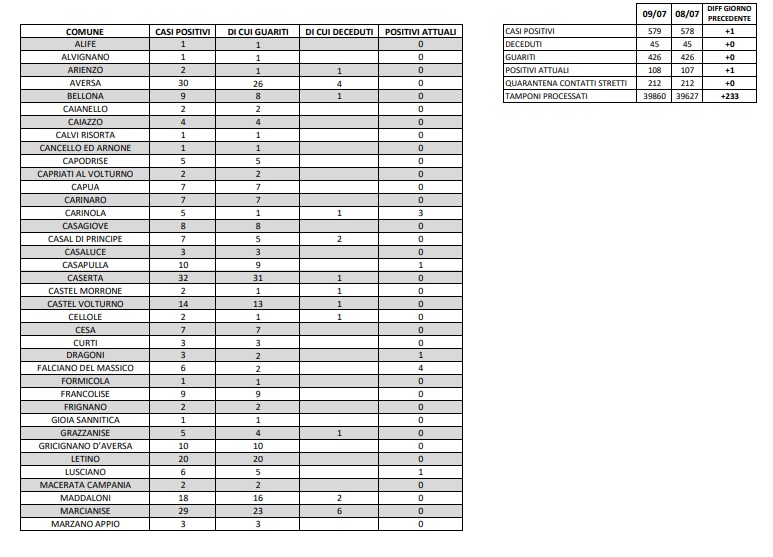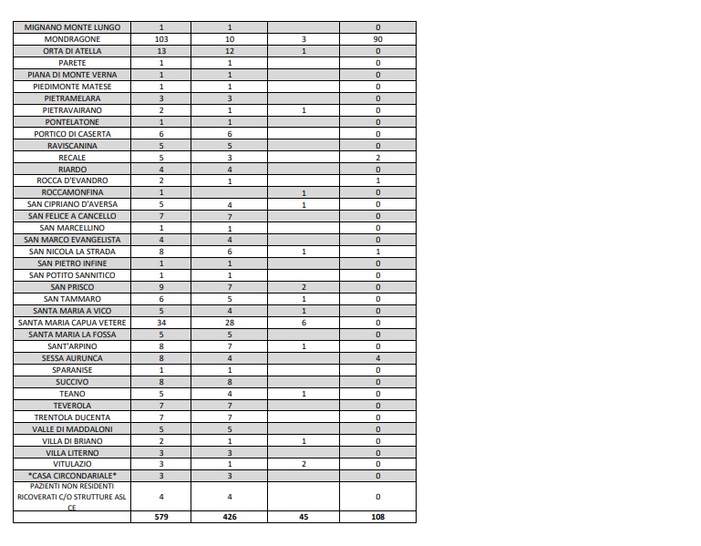 Questi i dati dell'ASL di Caserta: