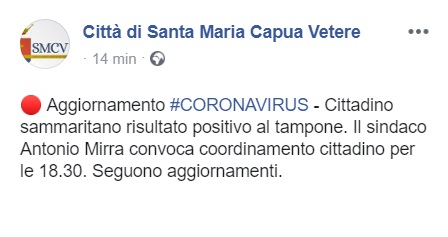 Questo quanto apprendiamo dalla pagina FB del Comune di SMCV