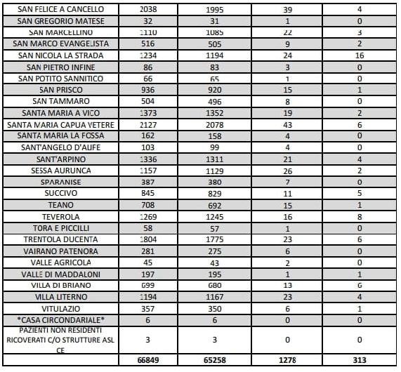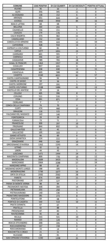 Questo il report odierno sui tamponi pubblicato sul sito web dell'Asl Caserta