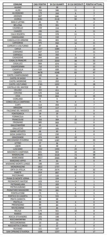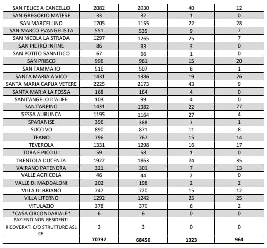 Quuesto il report sulla situazione epidemiologica in provincia di Caserta pubblicato sul sito web dell'Asl locale:
