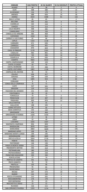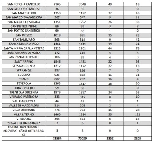 Questo il report odierno sulla situazione epidemiologica in provincia di Caserta pubblicato sul sito Web dell'Asl locale