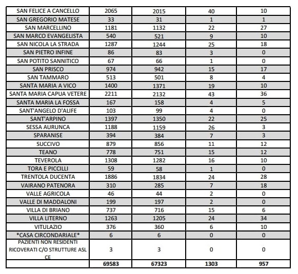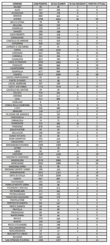 Questo il report sulla situazione epidemiologica in Provincia pubblicato oggi sul sito dell'Asl Caserta