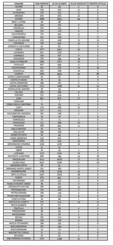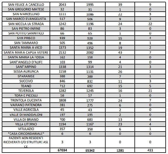 Questo il report sulla situazione epidemiologica in Provincia da poco pubblicato sul sito dell'Asl Caserta