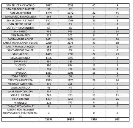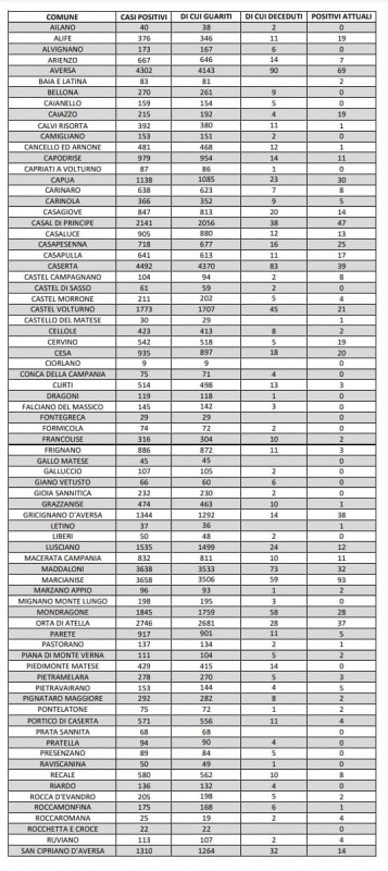Questo il report sulla situazione epidemiologica in provincia di Caserta pubblicato sul sito web dell'Asl locale