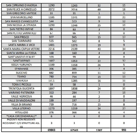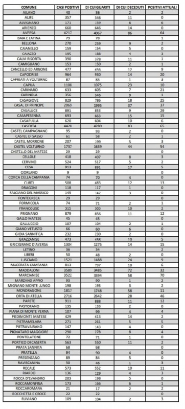 Questo il report sulla situazione epidemiologica in provincia di Caserta pubblicato sul sito web dell'Asl locale: