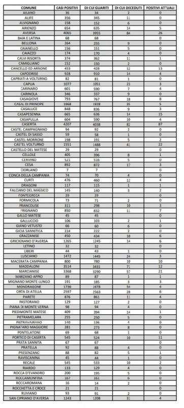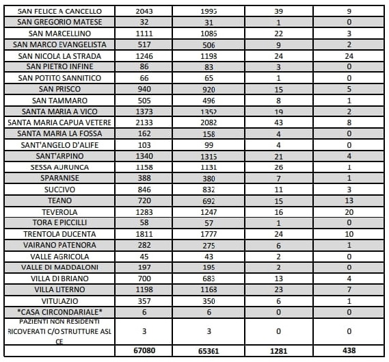 Questo il report sulla situazione epidemiologica in Provincia di Caserta da poco pubblicato sul sito web dell'Asl locale