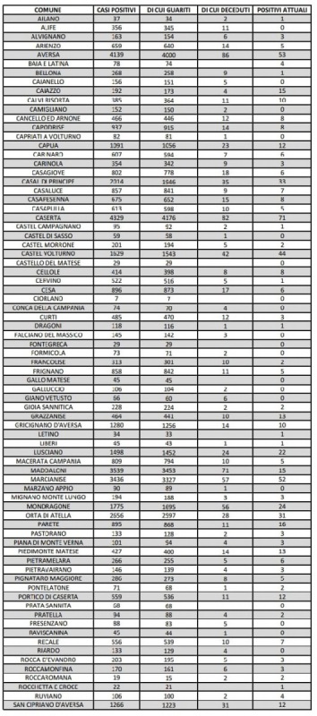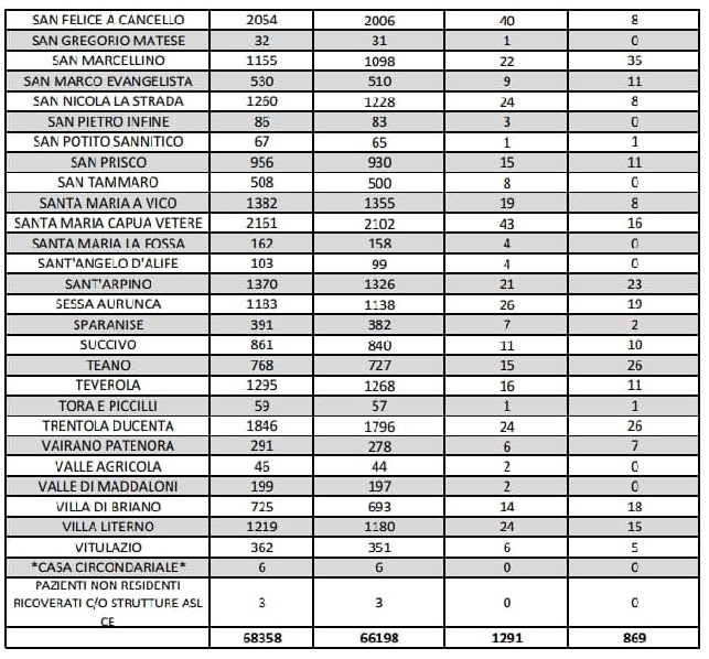 Questo l'ultimo report sui tamponi in Provincia di Caserta pubblicato sul sito dell'Asl Caserta