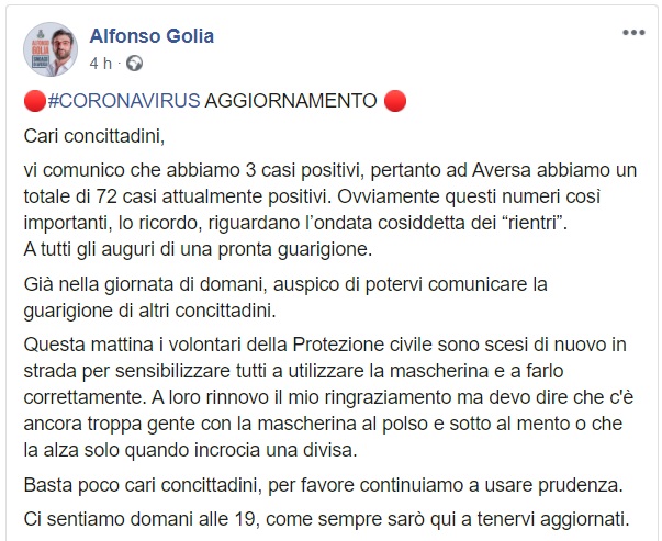 Questo quanto pubblicato dal Sindaco di Aversa