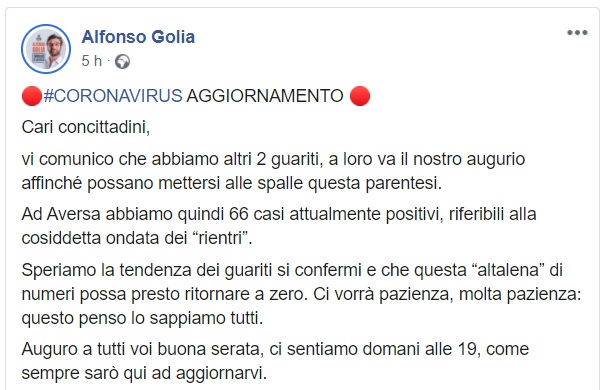 Questo quanto pubblicato dal Sindaco Golia