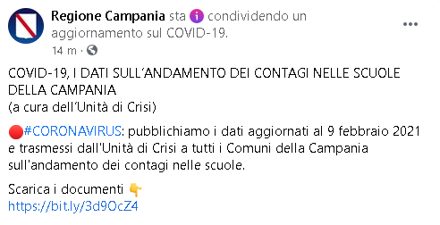 Lo apprendiamo dalla pagina Facebook della Regione Campania: