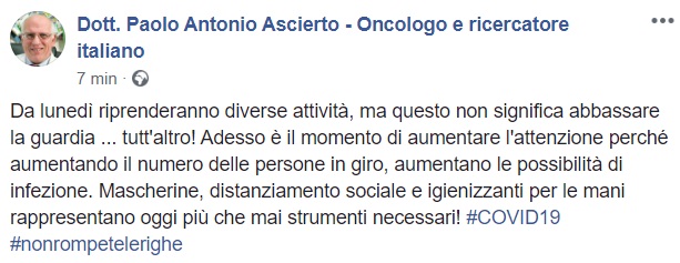 Questo quanto apprendiamo dalla pagina facebook del Prof. Ascierto:
