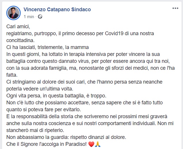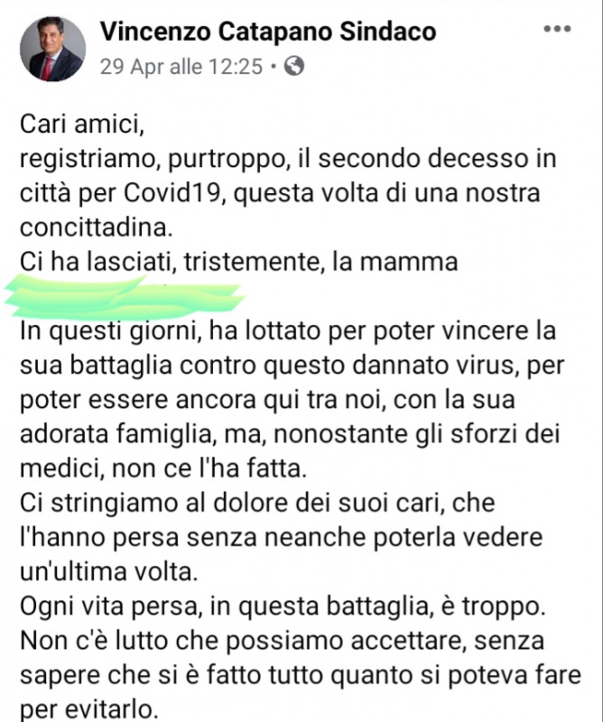 Questo parte di quanto pubblicato dal Sindaco Catapano