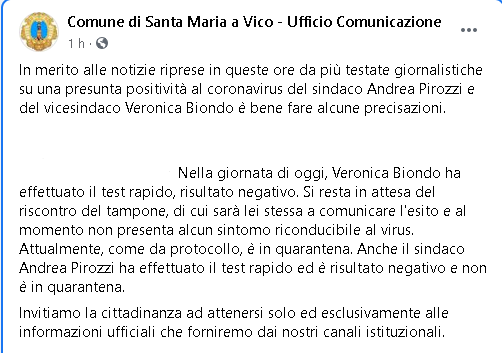 Lo apprendiamo dalla pagina facebook Santa Maria a Vico-Ufficio Comunicazione.