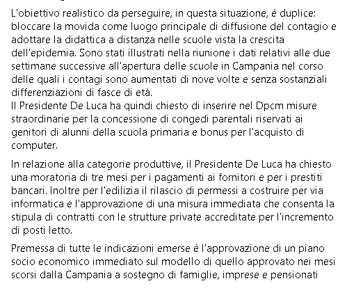 COVID-19: "SUBITO UN PIANO SOCIO ECONOMICO MODELLO CAMPANIA"