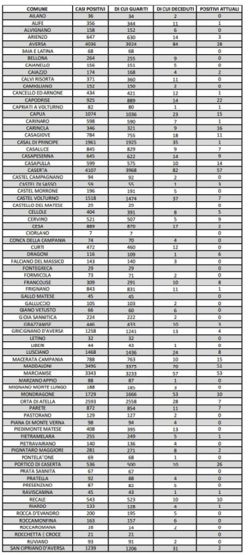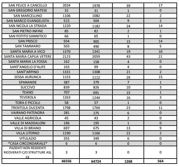 Questo l'ultimo report sulla situazione epidemiologica in Provinca pubblicato sul portale web dell'Asl Caserta.
