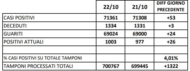 COVID. 23/10. Salgono ancora i contagi: superata quota 1000 positivi attuali in provincia di Caserta. Tre i decessi registrati