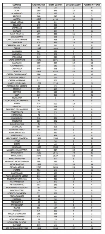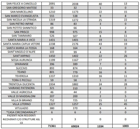 Questo il report sulla situazione epidemiologica in provincia di Caserta pubblicato sul sito web dell'Asl locale