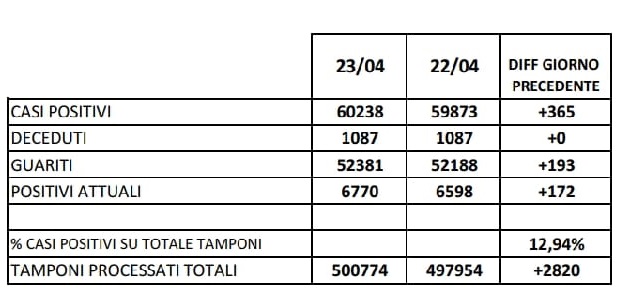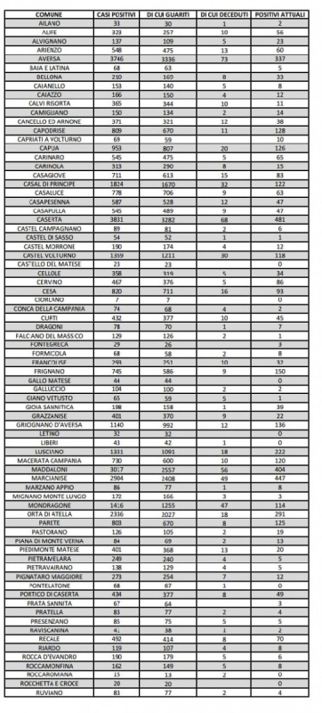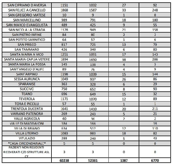 Questi i dati sui tamponi effettuati diffusi sul sito web dell'Asl Caserta
