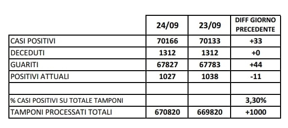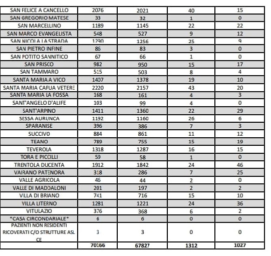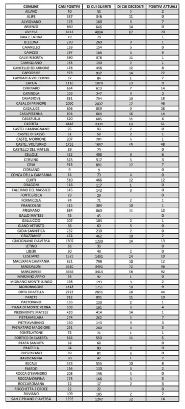 Questo il report sui tamponi pubblicato oggi sul sito web dell'Asl Caserta