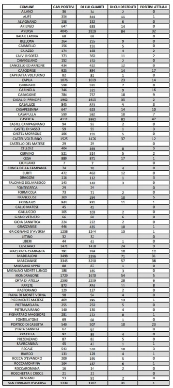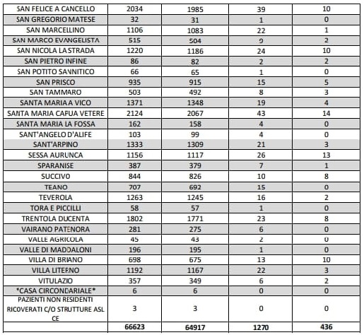 Questo il report quotidiano sulla situazione epidemiologica in Provincia pubblicato sul portale dell'Asl Caserta