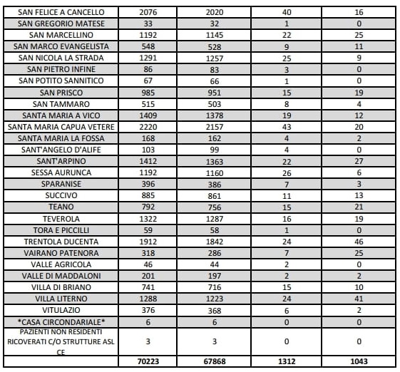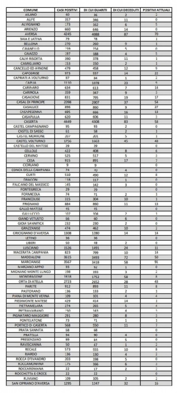 Questo il report sulla situazione epidemiologica in provincia di Caserta pubblicato oggi sul sito web dell'Asl Locale