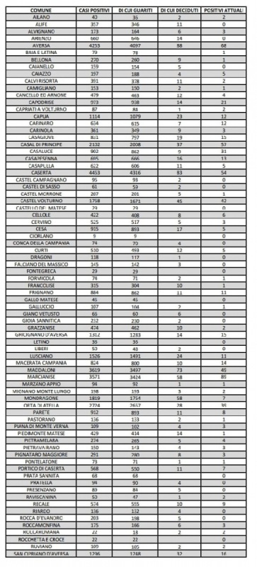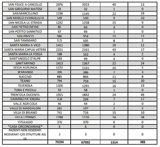 Questo il report sulla situazione epidemiologica in provincia di Caserta pubblicato sul sito web dell'Asl locale