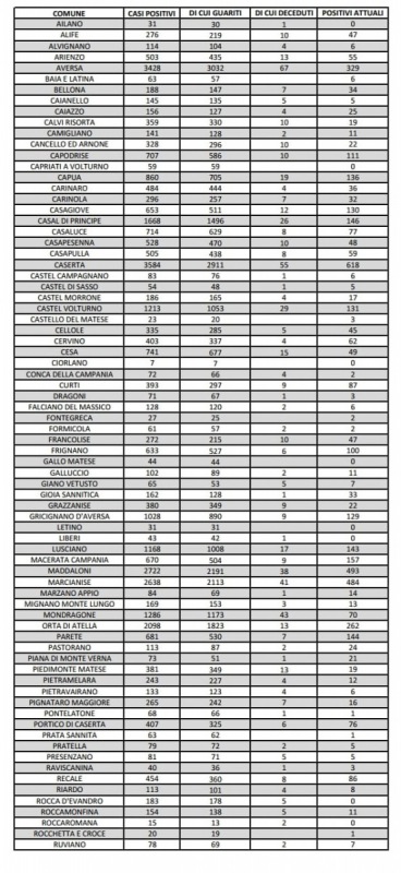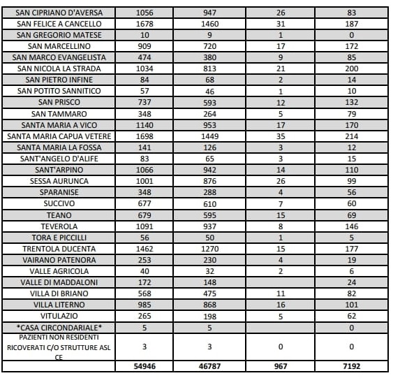 Questo il report tamponi pubblicato poco fa dall'Asl Caserta.