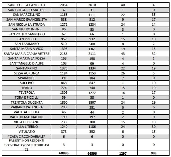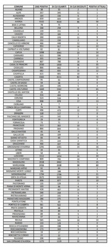 Questo il report sulla situazione epidemiologica in provincia di Caserta da poco pubblicato sul sito web dell'Asl locale