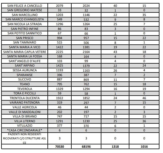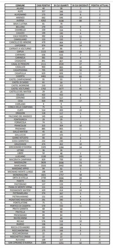 Questo il report sulla situazione epidemiologica in provincia di Caserta da poco pubblicato sul sito web dell'Asl locale