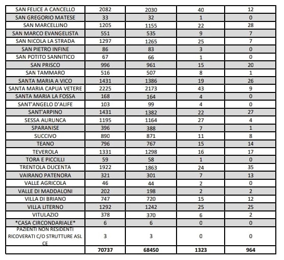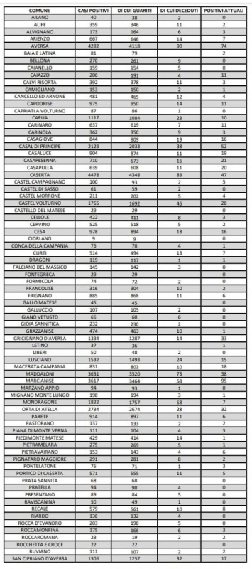 Questo il report sulla situazione epidemiologica in provincia di Caserta da poco pubblicato sul sito web dell'Asl locale