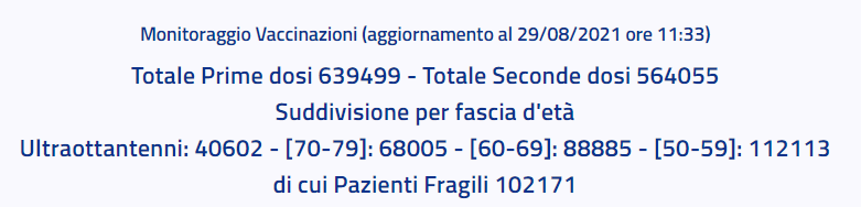 Questo l'ultimo aggiornamento sui vaccini in provincia di Caserta pubblicato sul sito web dell'Asl locale