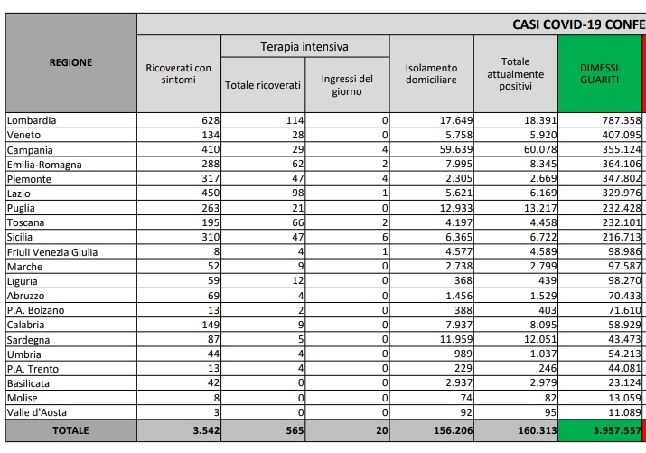 Il contagio da Coronavirus è in forte calo, presto anche la Regione Campania tornerà in zona bianca. La campagna vaccinale è da record per efficienza e rapidità ma il numero dei positivi attuali non premia la nostra regione. Sono poco più di 60mila attualmente i malati di Covid in Campania: la Lombardia, seconda nella classifica delle regioni italiane ne ha 18mila, il Lazio 13mila e la Sardegna 12mila (uniche quattro ad avere ancora più di 10mila contagi). La sintomatologia del virus, a giudicare dai dati, in Campania è però nettamente più debole: i ricoveri sono solo 410 (meno dell'uno percento dei positivi attuali) mentre in Lombardia ben 628 pari a quasi il 4% dei positivi.