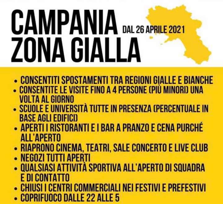 La Campania torna in zona gialla. Di seguito le nuove regole da rispettare