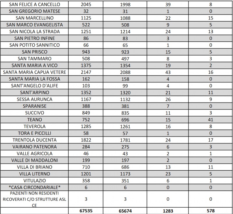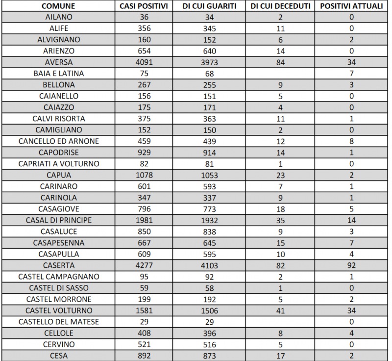 Questo quanto si apprende dall'Asl Caserta: