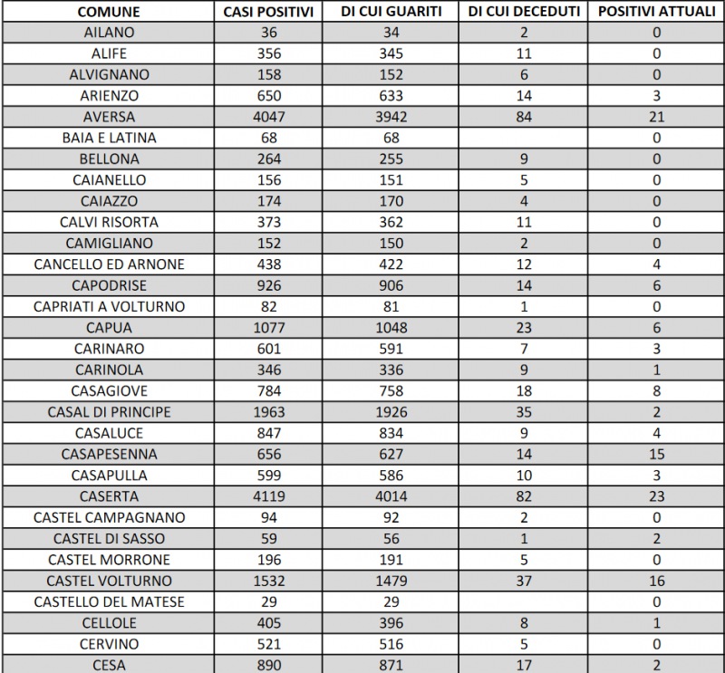 Questo quanto si apprende dall'Asl Caserta: