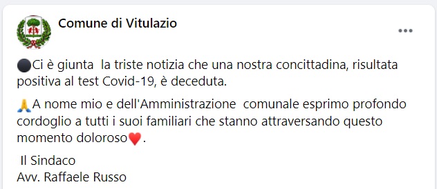 Questo quanto pubblicato sulla pagina facebook del Comune di Vitulazio