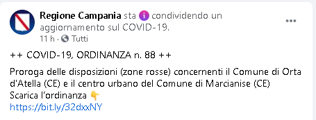 Lo apprendiamo dalla pagina Facebook della Regione Campania: