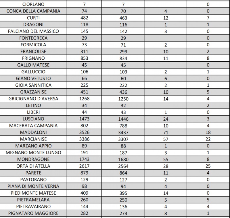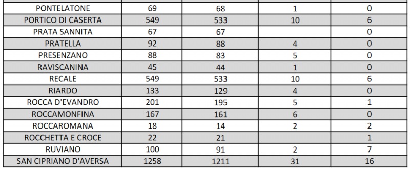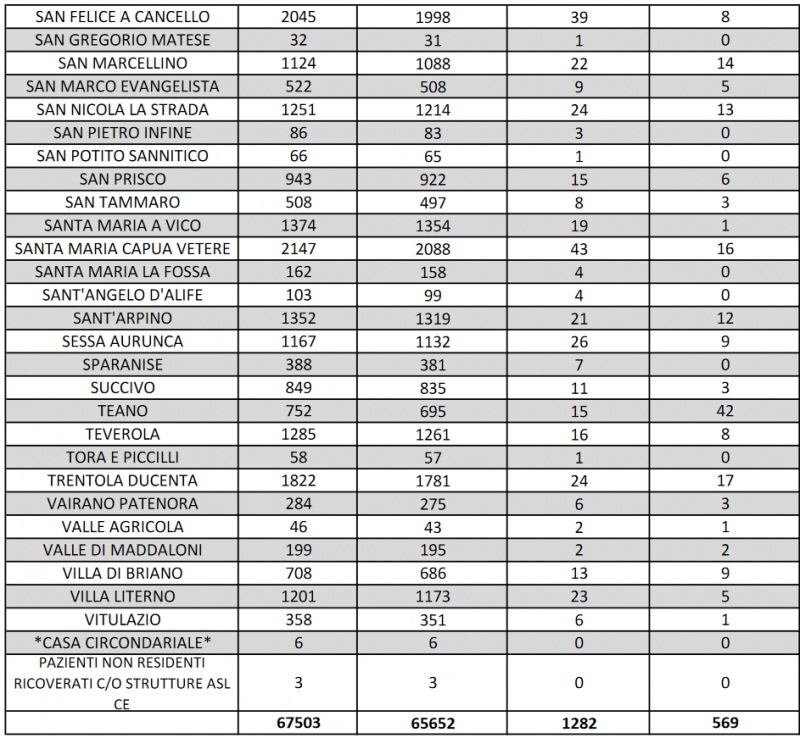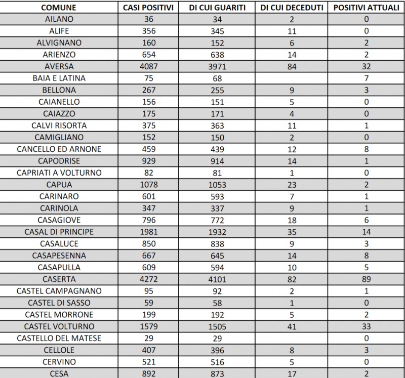Questo quanto riportato dall'Asl Caserta: