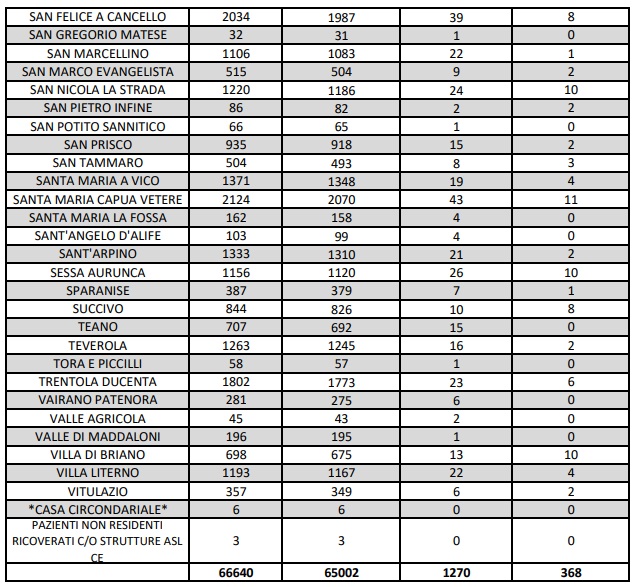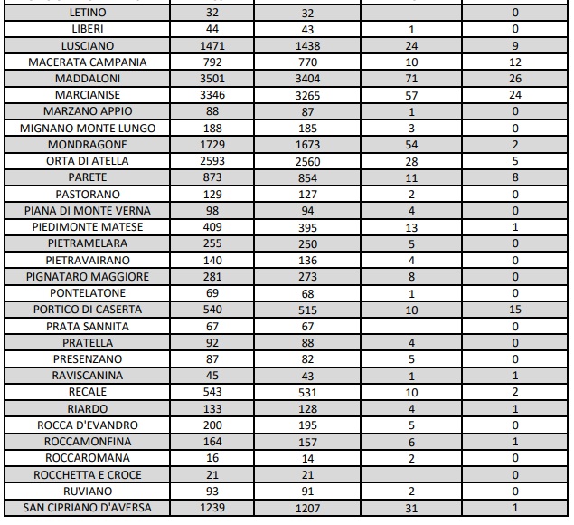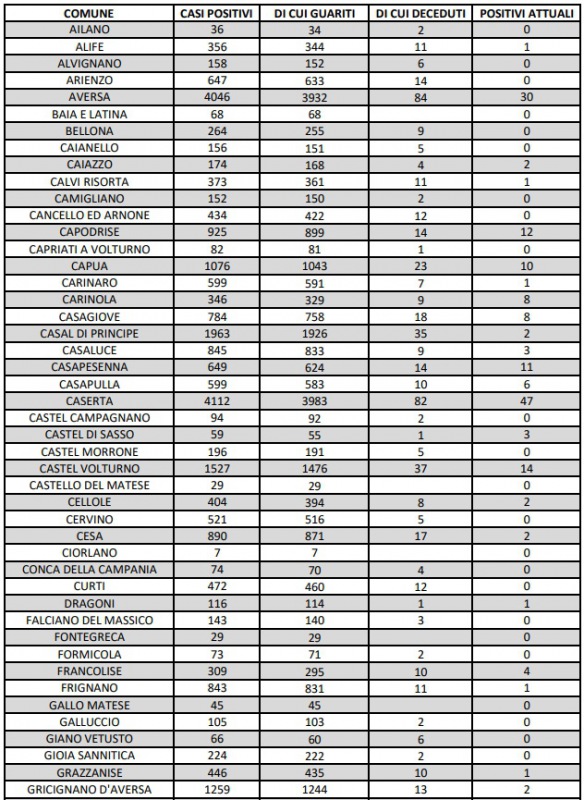Covid Prov. Ce. Una buona notizia: nessun nuovo decesso. Resta Caserta la città con più positivi