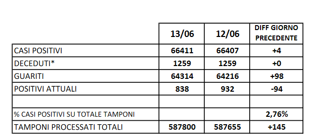 COVID. Provincia di Caserta: i dati del 14 giugno. Salgono i guariti