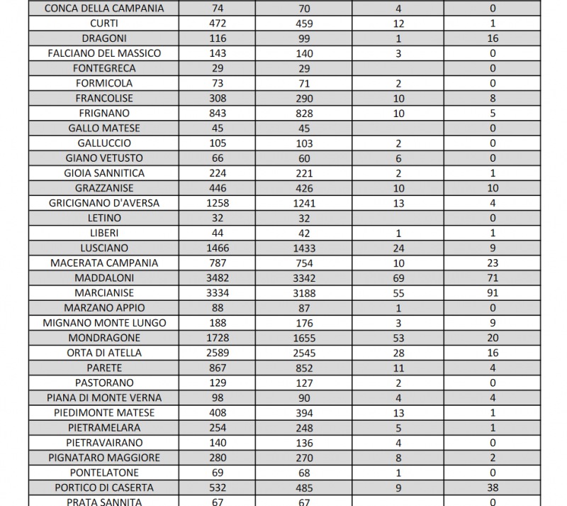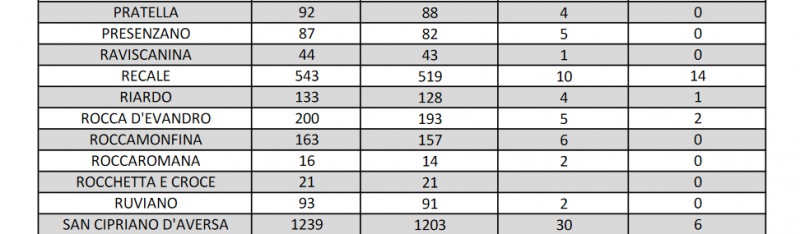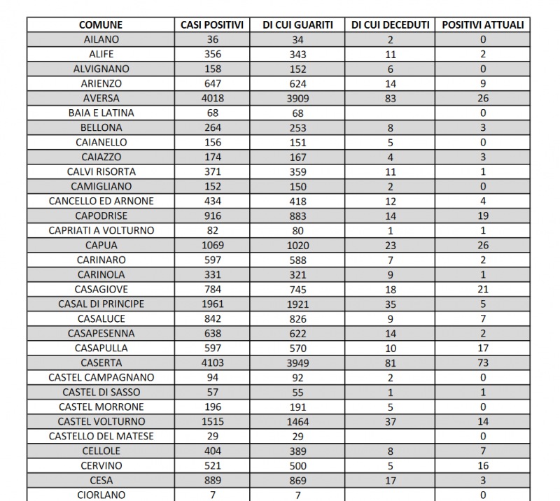 Questi i dati dell'Asl di Caserta: