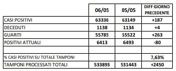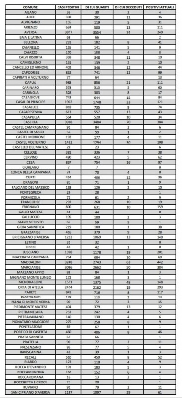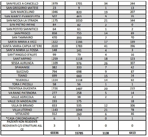 Questi i dati pubblicati poco fa dall'Asl Caserta sul suo sito web