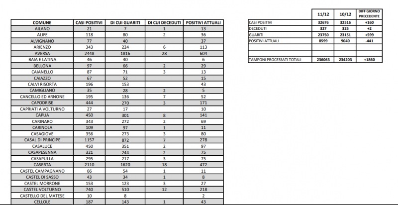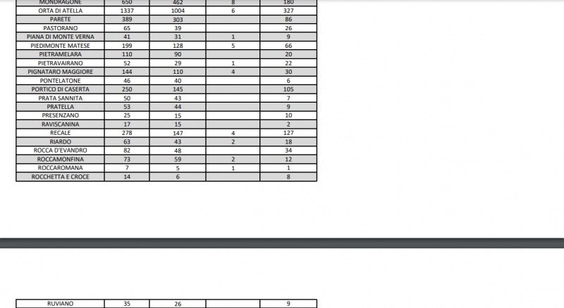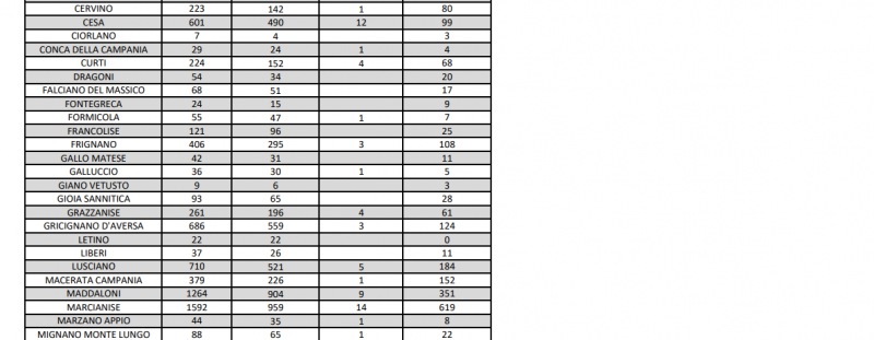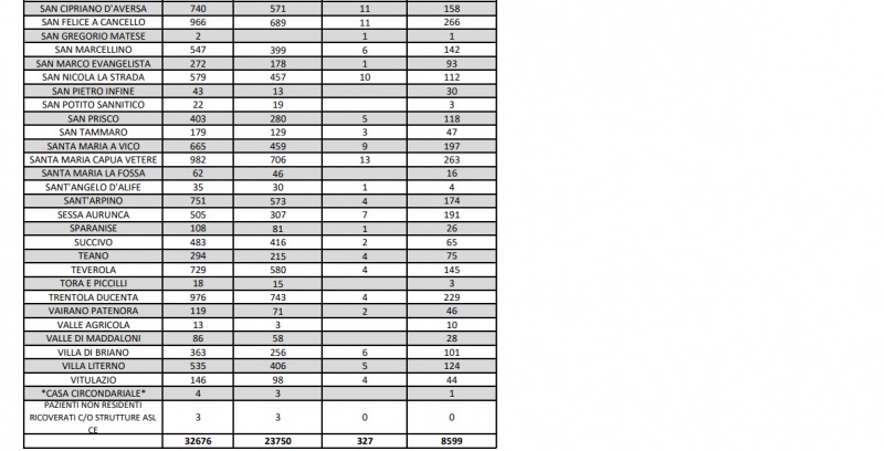 Questi i dati sui tamponi effettuati pubblicati poco fa dall'Asl Caserta.